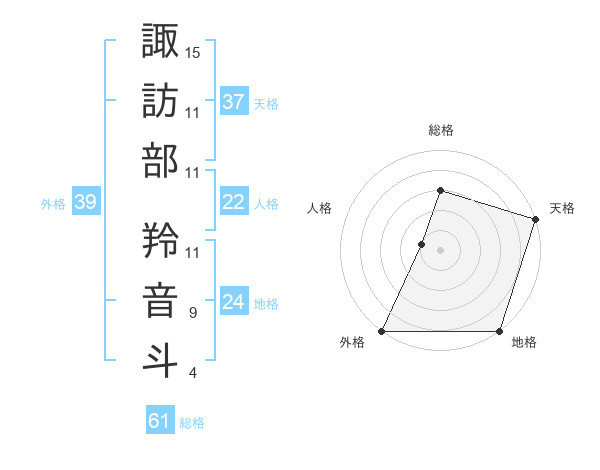 諏訪部 羚音斗さんの天格は37画の5点!