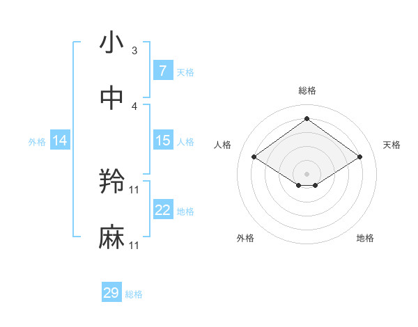 小中 羚麻さんを姓名の画数から五運を鑑定