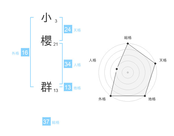 小櫻 群さんの総格は37画の5点!