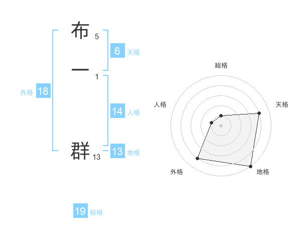 布一 群さんの総格は19画の1点!