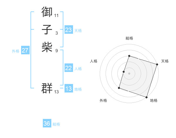 御子柴 群さんの天格は23画の5点!