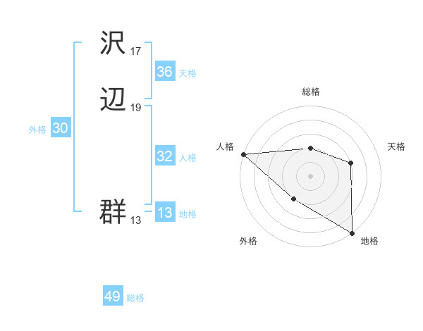 沢辺 群さんの総格は49画の2点!