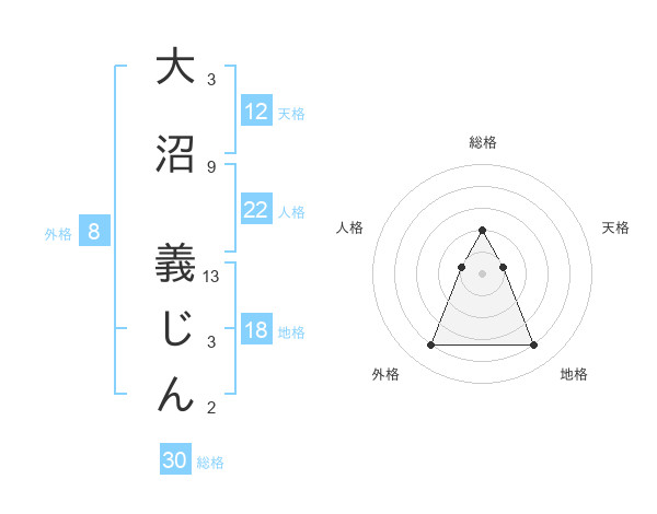 大沼 義じんさんを姓名の画数から五運を鑑定