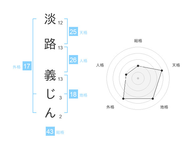 淡路 義じんさんを姓名の画数から五運を鑑定