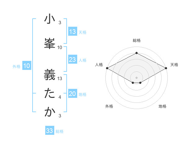 小峯 義たかさんを姓名の画数から五運を鑑定