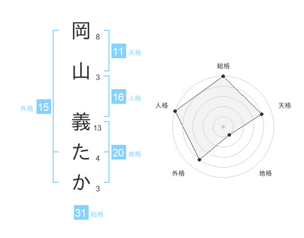 岡山 義たかさんを姓名の画数から五運を鑑定