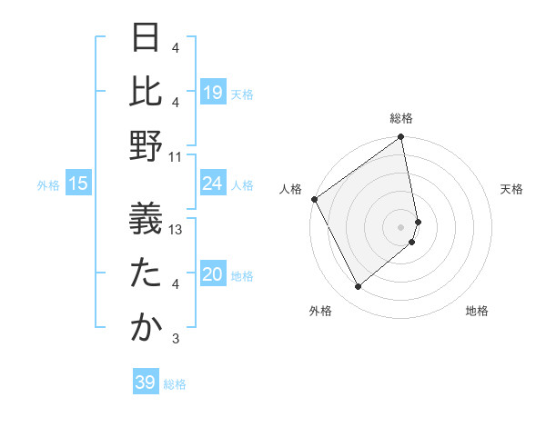 日比野 義たかさんを姓名の画数から五運を鑑定