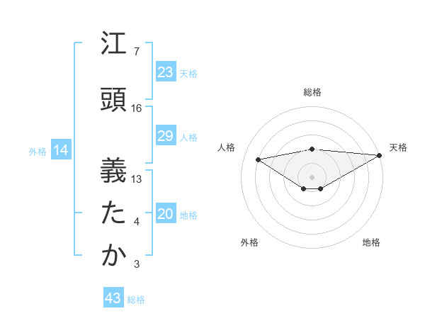 江頭 義たかさんを姓名の画数から五運を鑑定