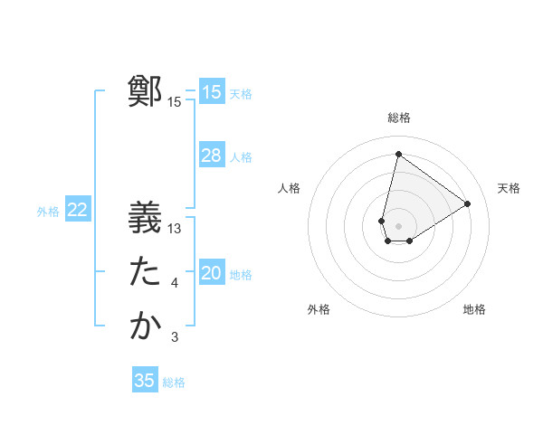 鄭 義たかさんを姓名の画数から五運を鑑定