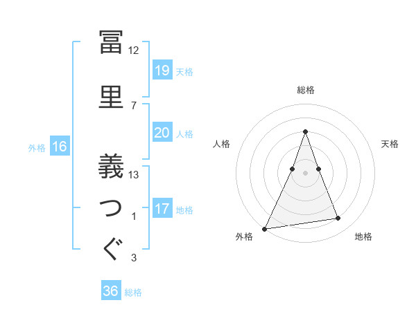 冨里 義つぐさんの地格は17画の4点!