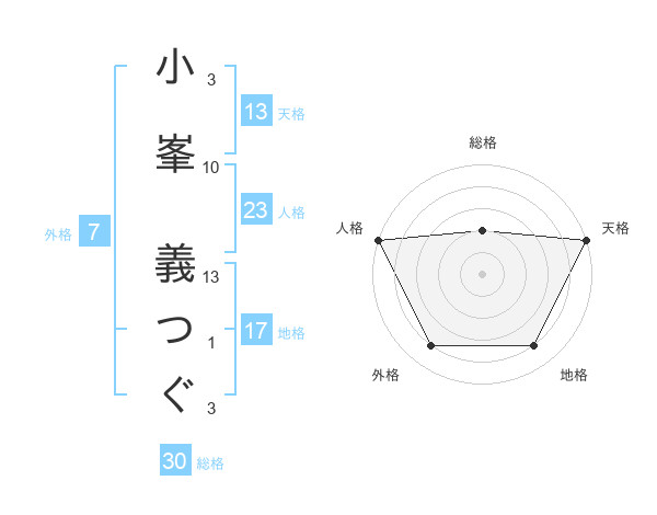 小峯 義つぐさんの天格は13画の5点!