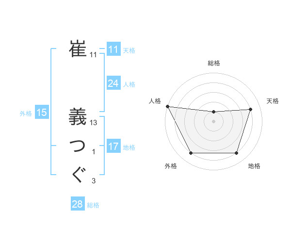 崔 義つぐさんを姓名の画数から五運を鑑定