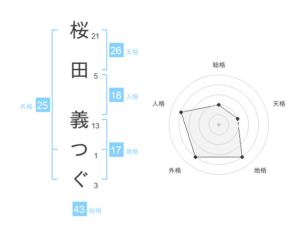 桜田 義つぐさんを姓名の画数から五運を鑑定