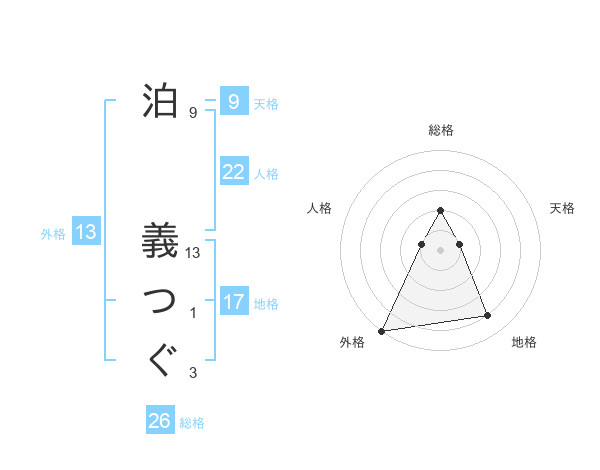 泊 義つぐさんの外格は13画の5点!