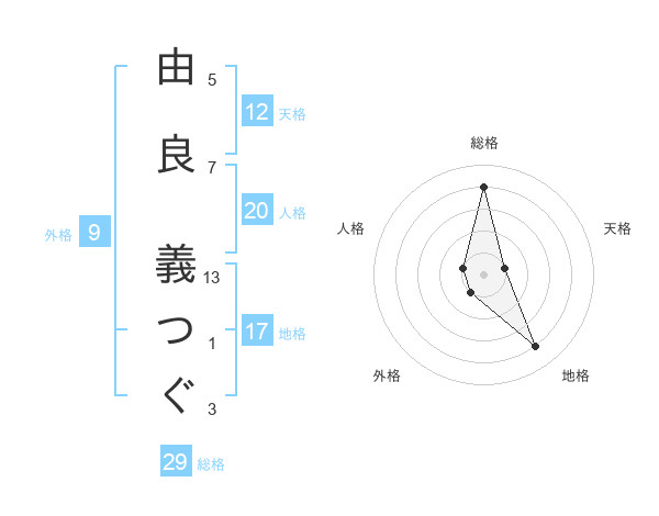 由良 義つぐさんを姓名の画数から五運を鑑定