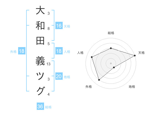 大和田 義ツグさんを姓名の画数から五運を鑑定