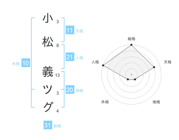 小松 義ツグさんを姓名の画数から五運を鑑定