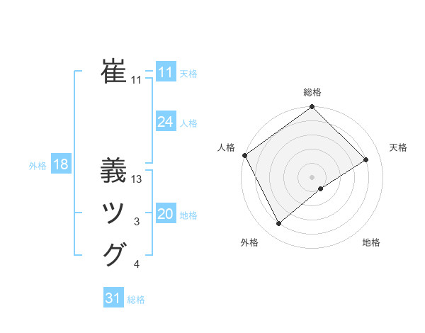 崔 義ツグさんを姓名の画数から五運を鑑定