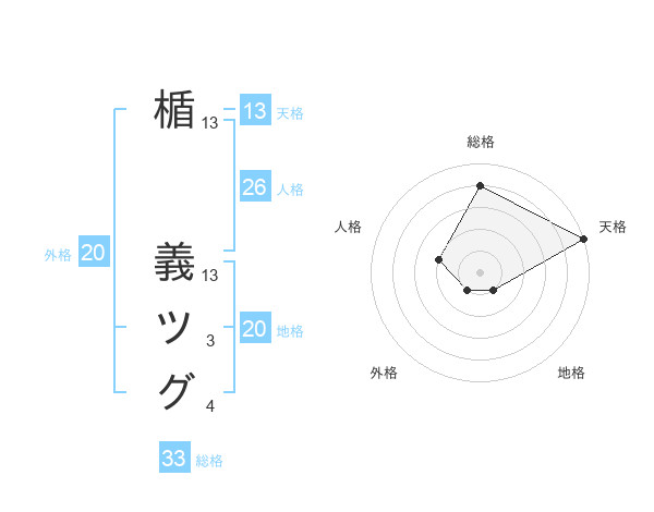 楯 義ツグさんの天格は13画の5点!