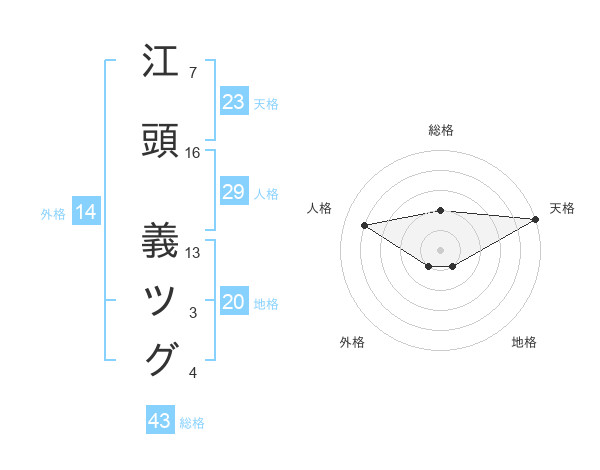 江頭 義ツグさんを姓名の画数から五運を鑑定