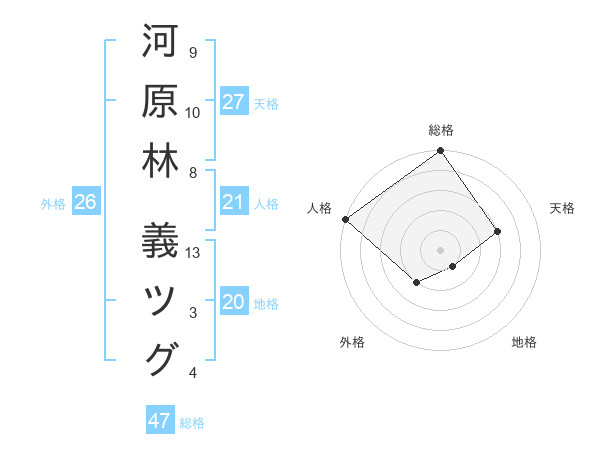 河原林 義ツグさんの総格は47画の5点!