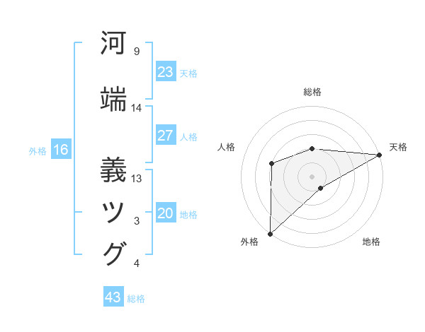 河端 義ツグさんの外格は16画の5点!