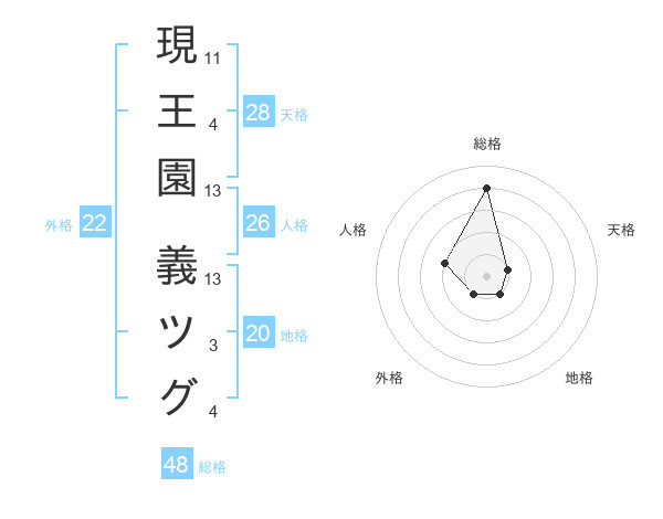 現王園 義ツグさんを姓名の画数から五運を鑑定