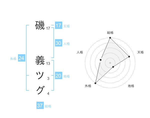 磯 義ツグさんの天格は17画の4点!