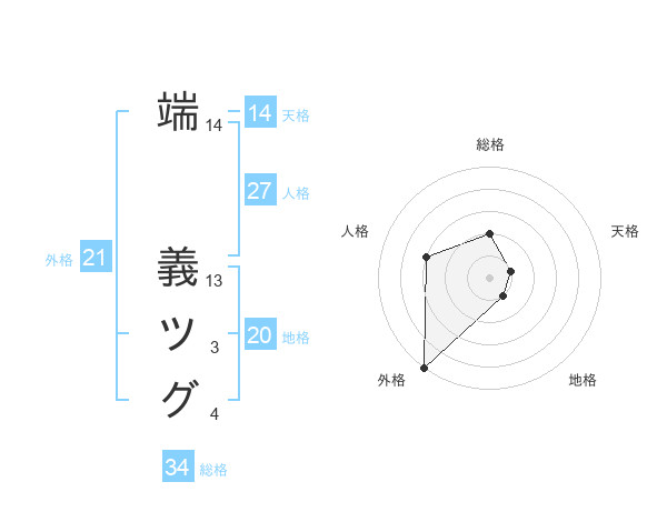 端 義ツグさんの外格は21画の5点!