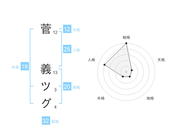 菅 義ツグさんの総格は32画の5点!