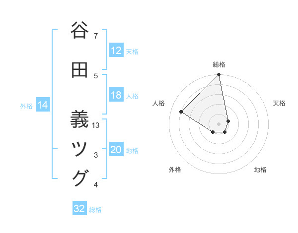 谷田 義ツグさんの地格は20画の1点!