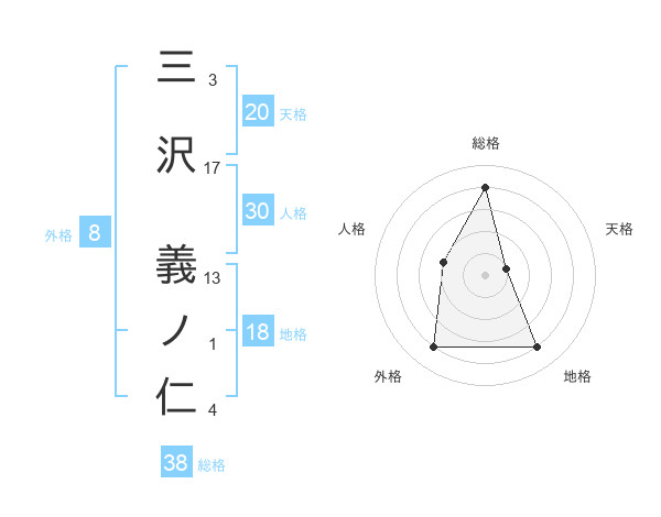 三沢 義ノ仁さんを姓名の画数から五運を鑑定