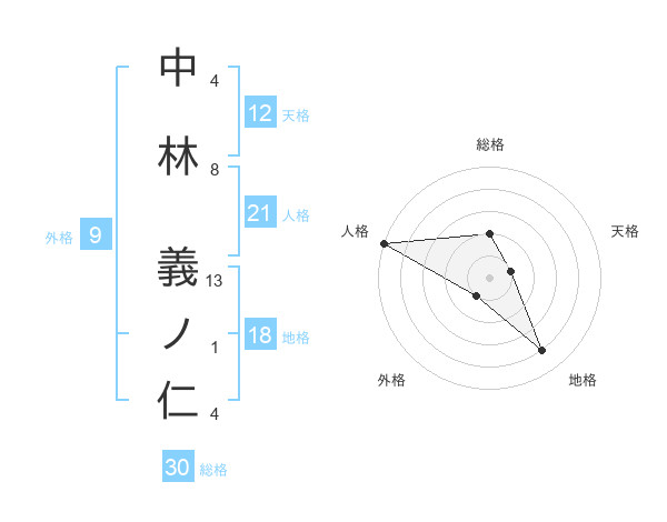 中林 義ノ仁さんを姓名の画数から五運を鑑定