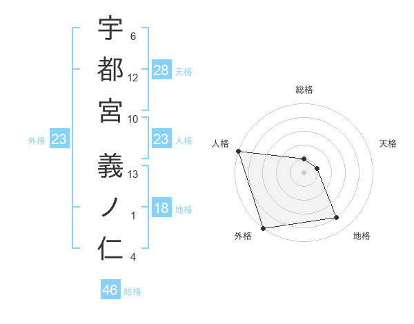 宇都宮 義ノ仁さんの総格は46画の1点!