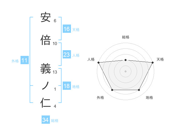 安倍 義ノ仁さんを姓名の画数から五運を鑑定