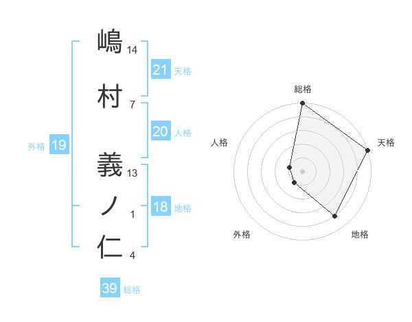 嶋村 義ノ仁さんを姓名の画数から五運を鑑定