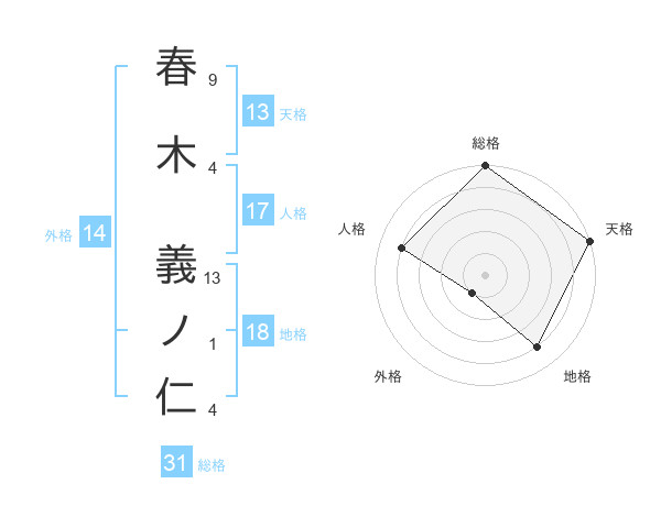 春木 義ノ仁さんの総格は31画の5点!