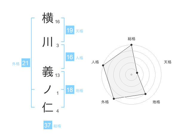 横川 義ノ仁さんの総格は37画の5点!
