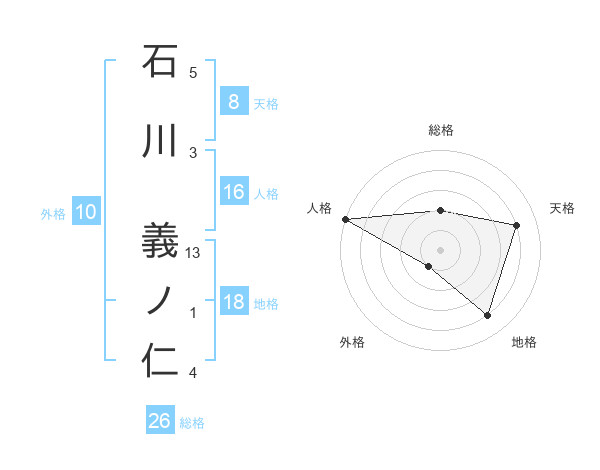 石川 義ノ仁さんの天格は8画の4点!