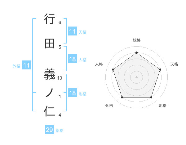 行田 義ノ仁さんを姓名の画数から五運を鑑定