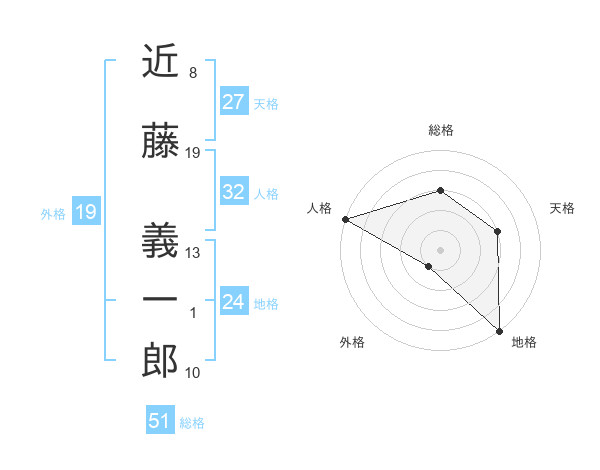 近藤 義一郎さんの総格は51画の3点