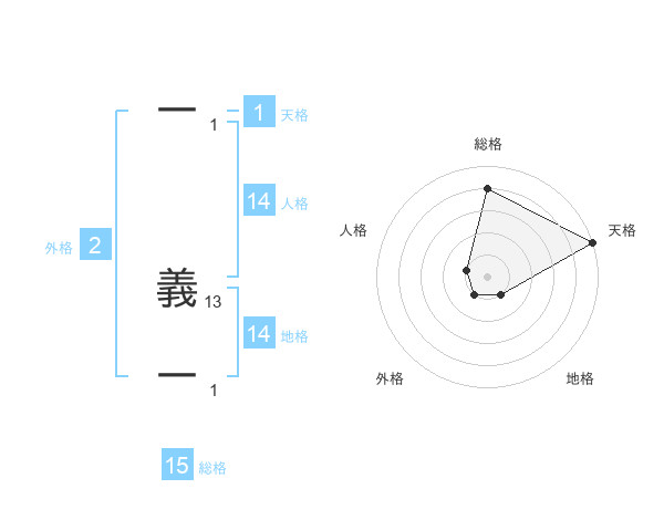 一 義一さんの総格は15画の4点!