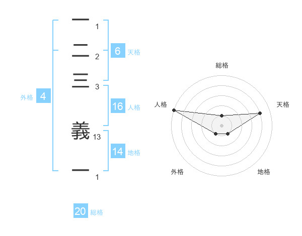 一二三 義一さんの総格は20画の1点