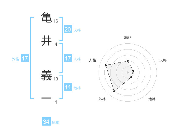 亀井 義一さんの外格は17画の4点!