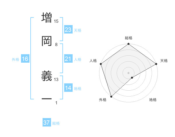 増岡 義一さんの天格は23画の5点!