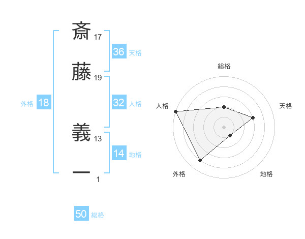 斎藤 義一さんの総格は50画の2点