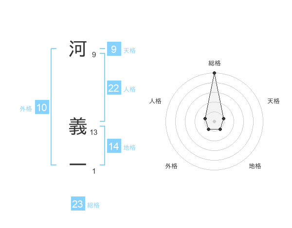 河 義一さんの総格は23画の5点!