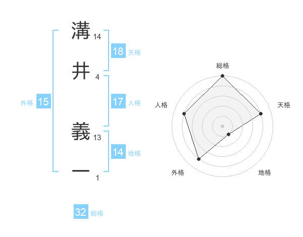 溝井 義一さんの総格は32画の5点!