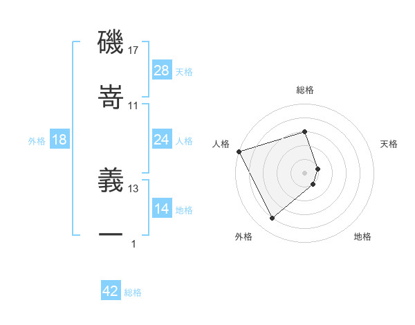 磯嵜 義一さんの外格は18画の4点!