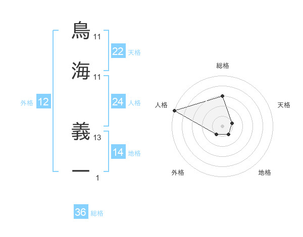 鳥海 義一さんを姓名の画数から五運を鑑定